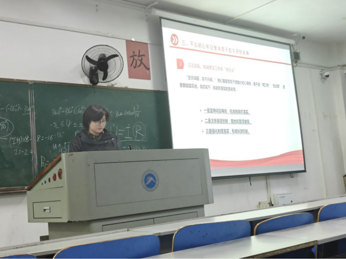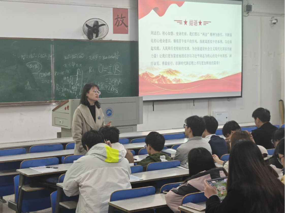 为深入学习贯彻全国两会精神,落实党中央关于高校党建的最新要求,强化党员理论武装,增强党组织的战斗力,2025年3月28日,人人足球直播-足球直播软件 测绘系学生党支部组织全体党员及入党积极分子在一教203开展了以“学两会精神,学八项规定,抓高校党建”为主题的学习活动。