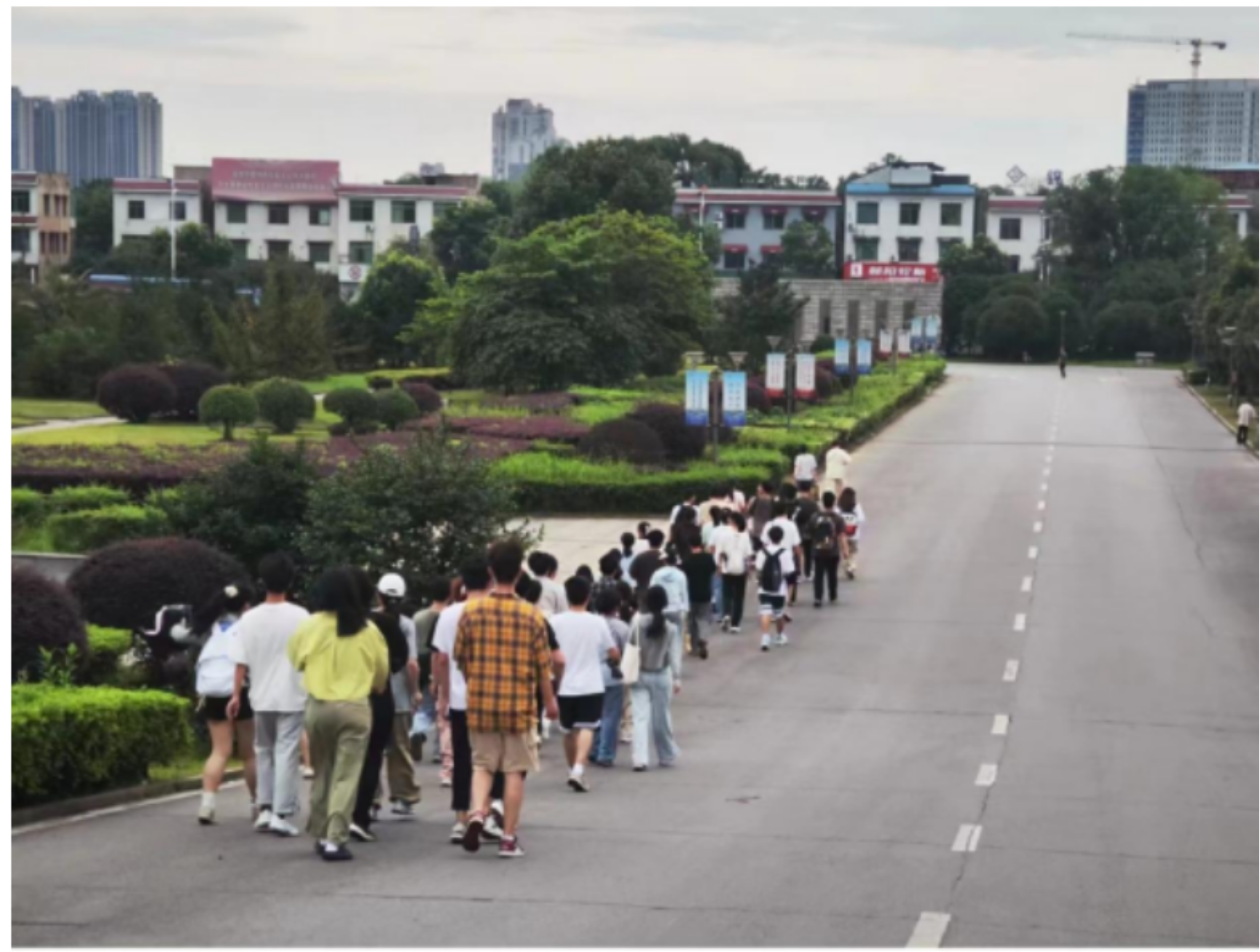 首先,全体参加活动的同学们在人人足球直播 门口集合。人人足球直播 党委副书记崔皓老师发表了热情洋溢的致辞,强调了徒步活动的意义,并鼓励同学们战胜困难、一鼓作气、坚持到底,走到学校文化的根源地-昭潭书院,去感受昭潭书院带来的历史沉淀感。