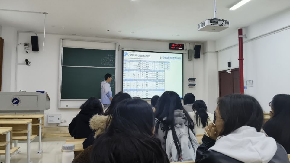 23地科三班聚焦“复盘提效,严纪备考”开展班会,主讲人复盘班级整体成绩,通过数据对比精准剖析学科短板与个体差距;围绕期中考试备考方法、考风纪律展开重点讲解,强调诚信应考底线。同时组织学生对照问题整改清单逐项自查,推动班级学风持续优化。