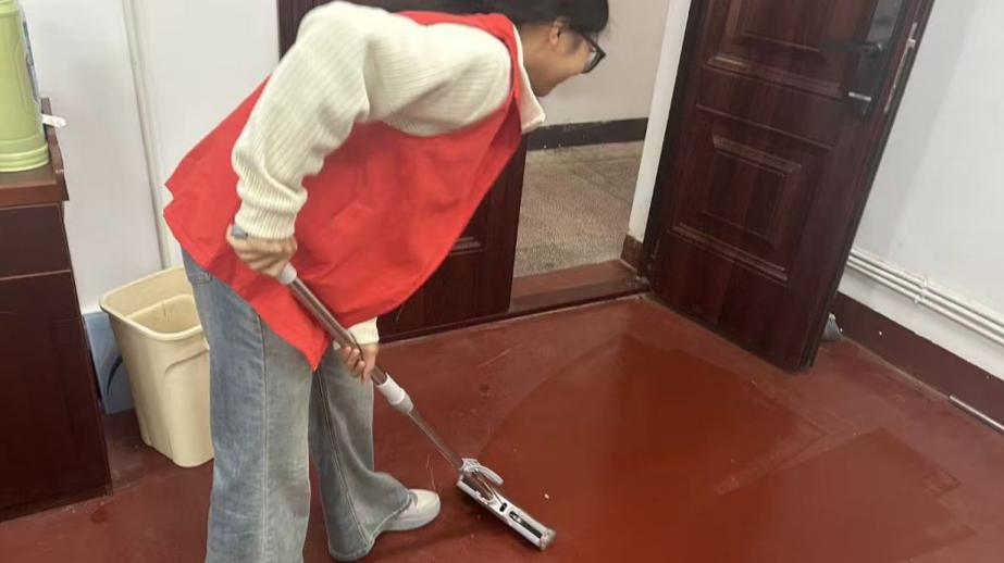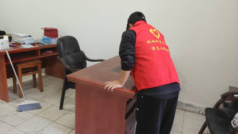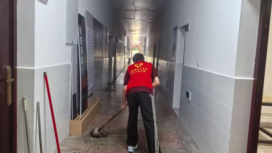 志愿者们齐聚地学楼前,在青年志愿者分会的统一组织下,有序投入清扫工作。大家手持工具,认真清理走廊、楼梯、会议室、活动室等公共区域,不放过任何一个卫生死角,每一处细节都凝聚着同学们的汗水与用心。