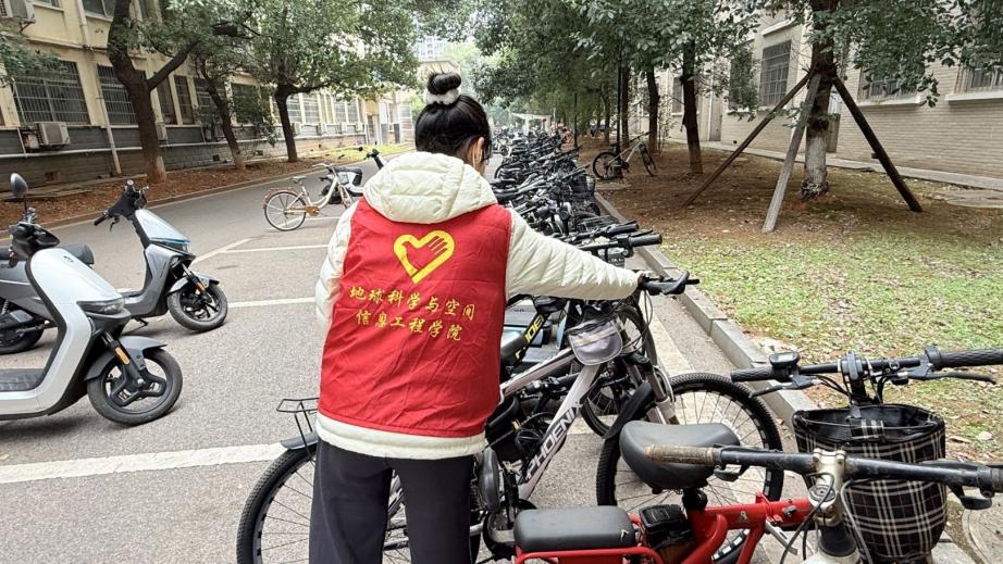 针对校园内电动车、自行车停放不规范的现象,志愿者将散乱停放的车辆一一归位,使校园空间更加井然有序。从室内到室外,从清洁到整理,同学们在劳动中互相协作、默契配合,展现出地空学子良好的精神风貌和团队精神。
