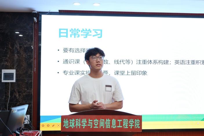 23级聂米奇结合自身优异的成绩,分享了实用的学习技巧。他认为,在日常学习中要有选择性,比如对于高数、线代等课程,注重体系构建十分关键。谈到专业课,他表示实操至关重要,地信专业的实习课对理解课堂知识帮助很大,同学们应重视起来,结合重点做好笔记。在考前复习阶段,聂米奇建议提前一个月开始,保证复习时间和效率。