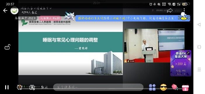 为帮助各位老师同学在日常学习生活中正确的看待压力和合理的面对心理问题,由湖南科技大学,湖南大学,湖南警察人人足球直播 主办的讲座与湖南大学工商管理人人足球直播 报告厅举办。讲座主讲人是主任医师,湖南省脑科医院睡眠障碍及神经症科主任,美国宾夕法利亚大学医人人足球直播 睡眠中心访问学者曾宪祥专家。