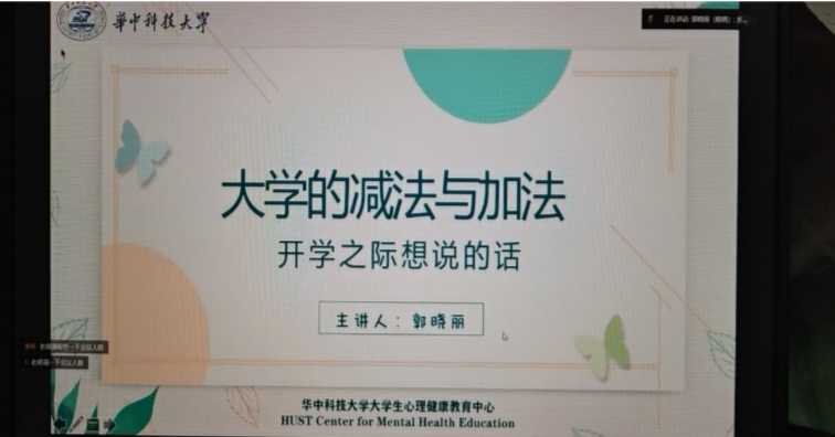 为了帮助同学们加强心理健康意识,增强心理的调控能力,积极培育向上的健康心态,在精神卫生活动日10月10日晚7点半华东科技大学心理健康教育中心副主任郭晓丽老师为大家做大学新生的心理适应讲座。