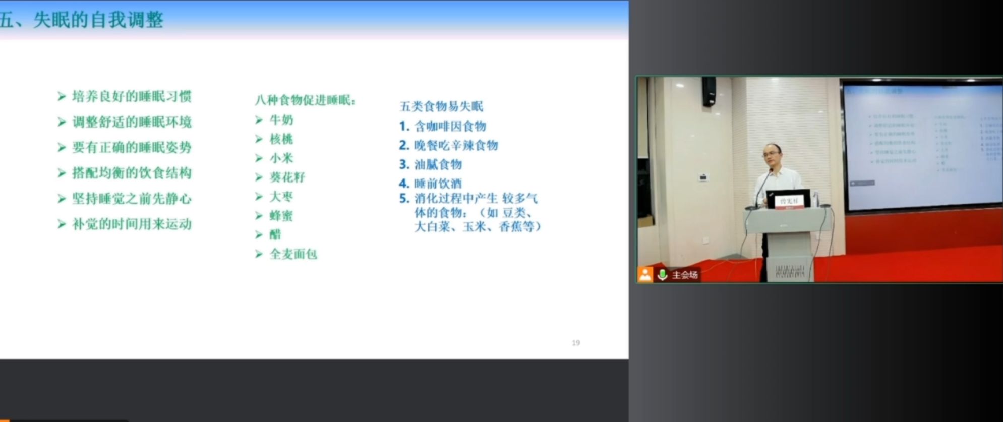 当前正值大学生完成校园到社会的过渡时期,面对诸多的生活问题和社会问题,学生难免会有困惑和压力。通过此次讲座,学生了解到了应对睡眠问题和部分心理问题的措施,有助于学生形成良好积极的心理,解决了同学们的一些疑惑,以更好地面对大学生活和今后的生活。