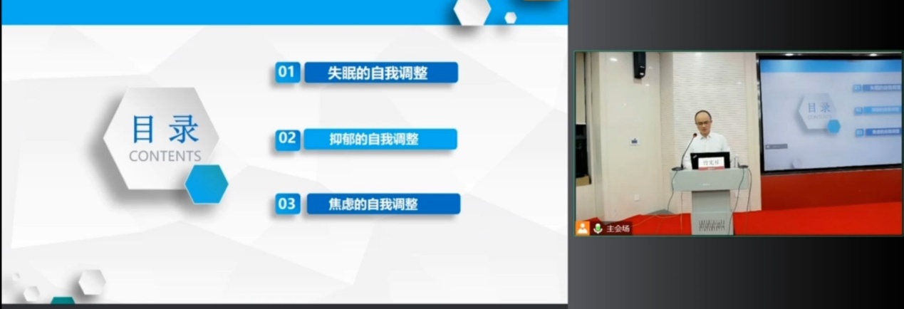 讲座上,曾宪祥专家首先讲述了失眠的自我调整,加深同学们对失眠的理解的同时,也为同学们失眠的问题提出了解决办法。接着,专家提到了抑郁的自我调整,列举了抑郁的主要表现,也向同学们提供了应对抑郁症的方法。最后专家讲述了焦虑的自我调整,进一步提升了同学们对焦虑的认知,同时也懂得了如何面对焦虑。专家指出,由中国睡眠研究会数据显示,2020疫情过后,中国国民的“睡前拖延症”迅速增长,平均睡眠时长为6.82小时,国外临床研究也表明,全球范围内失眠患者数量大大增加,可见睡眠问题的现状不容乐观。而常见的心理问题现状,也并非乐观,世界及中国,抑郁症都排在精神障碍首位,世界卫生组织预测,到2030年,抑郁症将会成为全球疾病负担首位因素。因此,在日常学习和生活中,我们要关注好睡眠问题和心理健康问题,学会自我调整,保持良好的心态,如有问题,及时就医。也要多多帮助周围有帮助需求的同学,让我们一起在阳光下茁壮成长。
