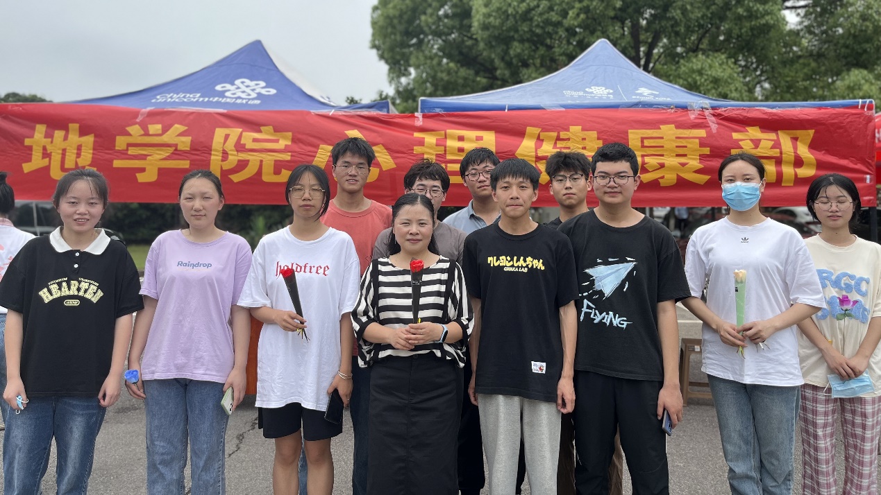 为庆祝全国两会的顺利召开,积极响应会议对心理健康和精神卫生的重视,更好地贯彻教育部关于大学生心理健康教育的方针政策,促进学生健康成长和全面发展,在湖南科技大学两校合并二十周年暨心理健康教育中心成立二十周年之际,湖南科技大学心理健康教育中心协各人人足球直播 心理健康部联合开展以“以青春之心,逐理想之光”为主题的第十八届大学生心理健康月系列活动。足球直播软件 心理健康部紧随校心理健康部的脚步,于5月21日在二区美食广场面向湖南科技大学全体同学开展摆点活动。罗书记和辅导员彭老师非常重视此次心理健康活动,特来到现场视察并且慰问工作人员。