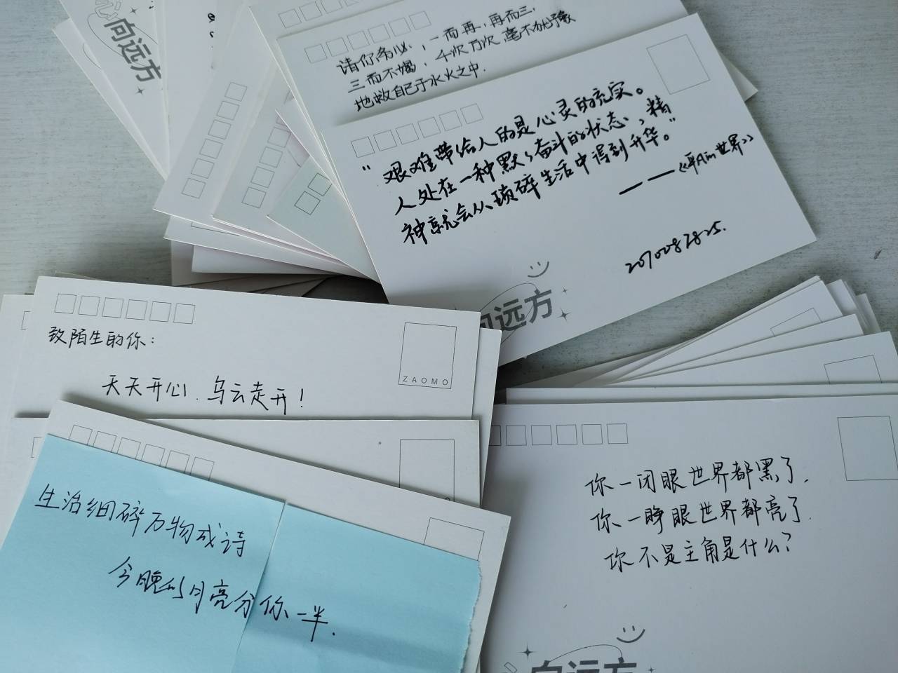 为了让同学们直面自己的内心世界,与自己的心灵沟通,放飞自己的想象力,以及扩大同学之间的社交,提高交流沟通能力,我部还举行了特色明信片交流活动。此特色活动收到同学们的积极响应,大家纷纷写下曾经感动鼓励到自己的话语,分享给有缘人,这种互相鼓励的方式非常新颖,收获大家一致好评。同时足球直播软件 还鼓励各班自行开展明信片交流活动后续回访活动。