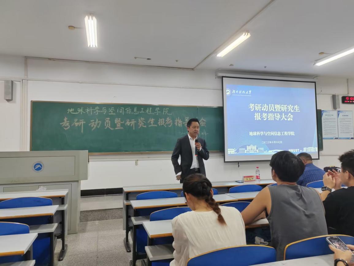 首先,人人足球直播 院长任伯帜致辞。他强调了考研对学子们的重要性,并鼓励学生们要勇于追求梦想,以积极的心态和充分的准备迎接考研的挑战。他表示:“研究生阶段的学习将为你们的专业发展提供更广阔的平台和更深入的研究机会。我希望你们能充分认识到这一点,积极备考,以实现自己的学术追求。”