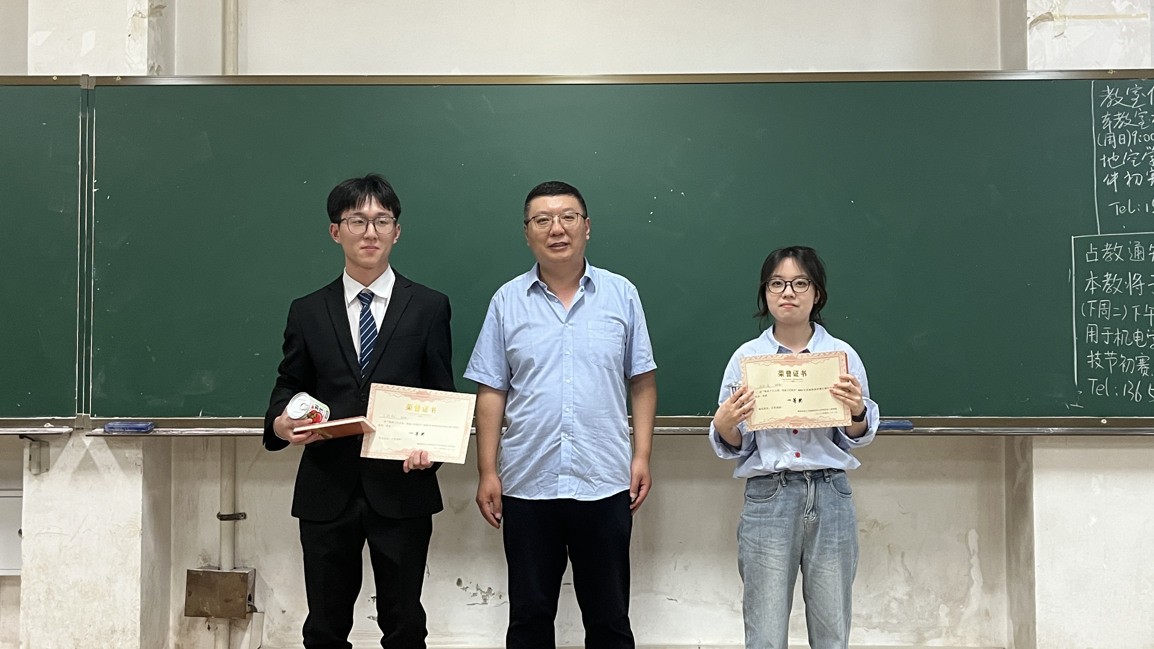 比赛最终评选出两名一等奖、三名二等奖、五名三等奖。王铁翔、汤知语荣获一等奖;许婧洋、程湘涵、徐孟雯荣获二等奖;谢思宇、张宇萌、唐婧婷、李钰麟、汪睿祥荣获三等奖。评委老师为获奖选手颁发荣誉证书,并合影留念。