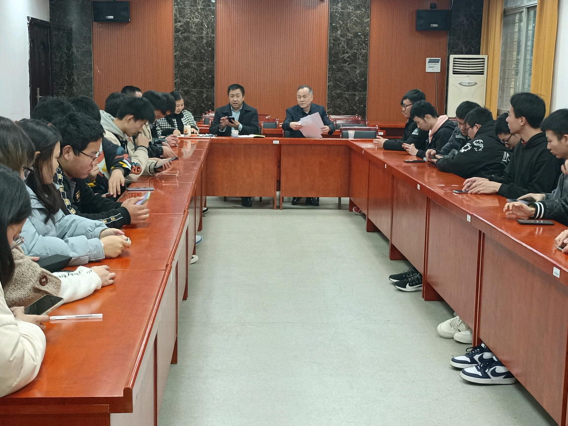 2022年3月1日下午四点, 人人足球直播 21级勘查技术与工程1班新学期第一次班会在地学楼206会议室召开。湖南科技大学副校长、该班班主任贺泽龙、人人足球直播 院长任伯帜、党委副书记罗玺、辅导员苏俊铭以及一班全体学生出席会议。