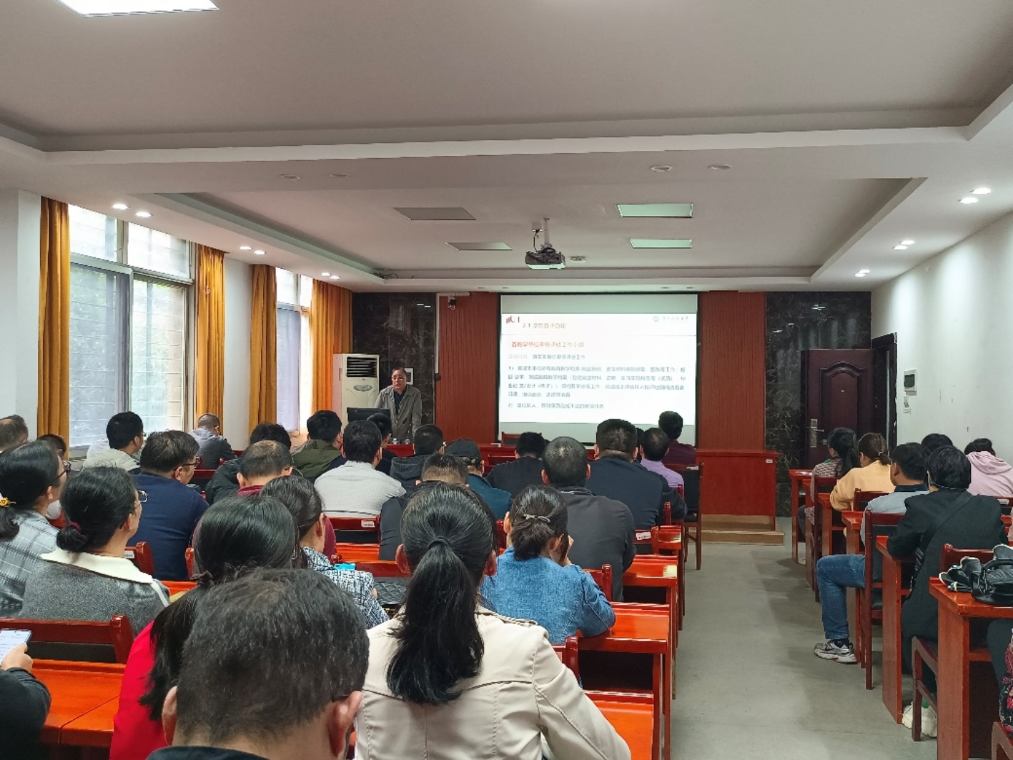 王欣教授作题为《知晓审核评估参与审核评估助力学校发展》的动员报告。他从基本情况、自评自建、线上评估、入校评估等四个方面指出要高度认识审核评估这项工作的重要性,深刻理解审核评估对学校人才培养的重要意义。