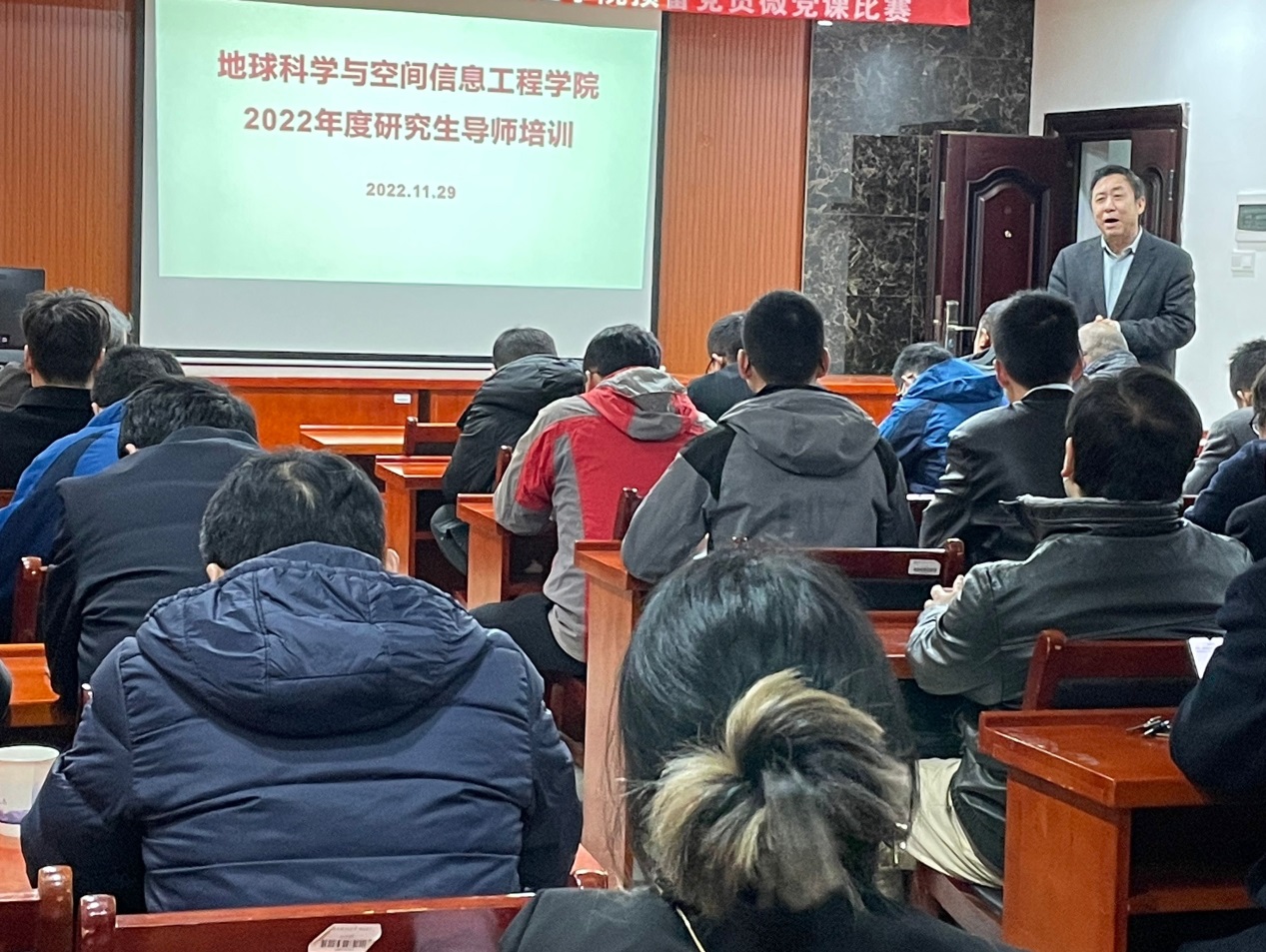 为了进一步加强研究生导师队伍建设,提升研究生导师的责任意识,11月28日,人人足球直播 在地学楼206举办2022年导师培训会议,会议由副院长陈新跃主持,任伯帜院长出席并讲话。全体研究生导师参加了此次培训会。