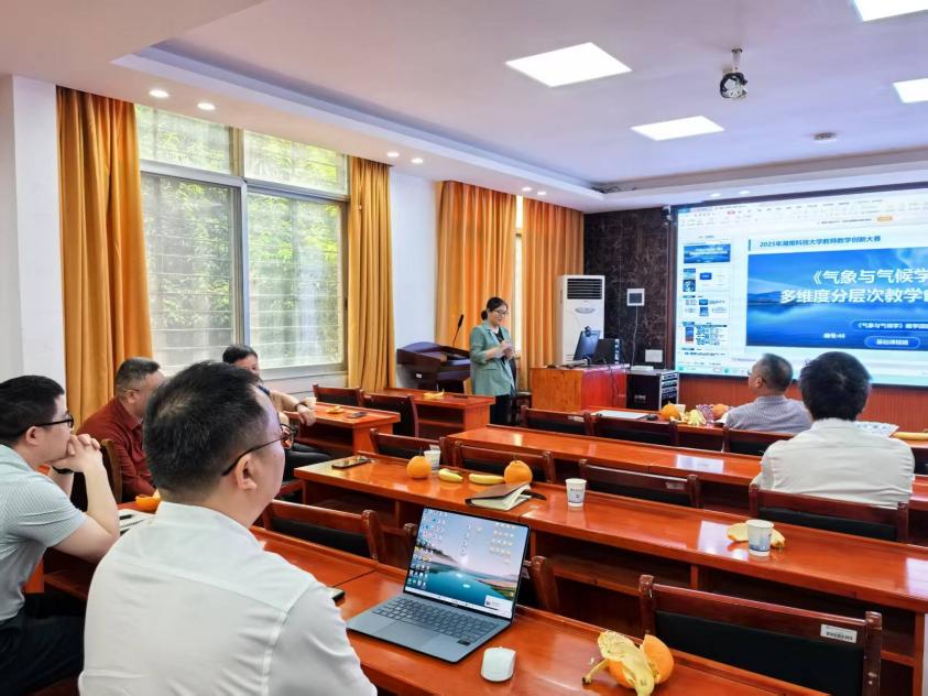 谢建老师和常晓丽老师分别就《误差理论与测量平差基础》和《气象与气候学》这两门课汇报了教学创新报告和教学设计思路,专家针对教学痛点总结、创新思路、支撑材料等关键性问题提出了宝贵意见。周险峰教授、王欣教授不但具有丰富的教学竞赛参赛经验,还在多项省级教学竞赛中担任评委工作,在赛事材料准备、教学设计等方面具有丰富的经验和独到的见解。周险峰教授强调:“教学创新需立足学生需求,以问题为导向,通过跨学科融合和实践性设计提升课堂吸引力。”王欣教授则结合往届优秀案例,指导教师如何在有限时间内突出教学亮点,并对教学语言表达、板书设计等细节进行示范。