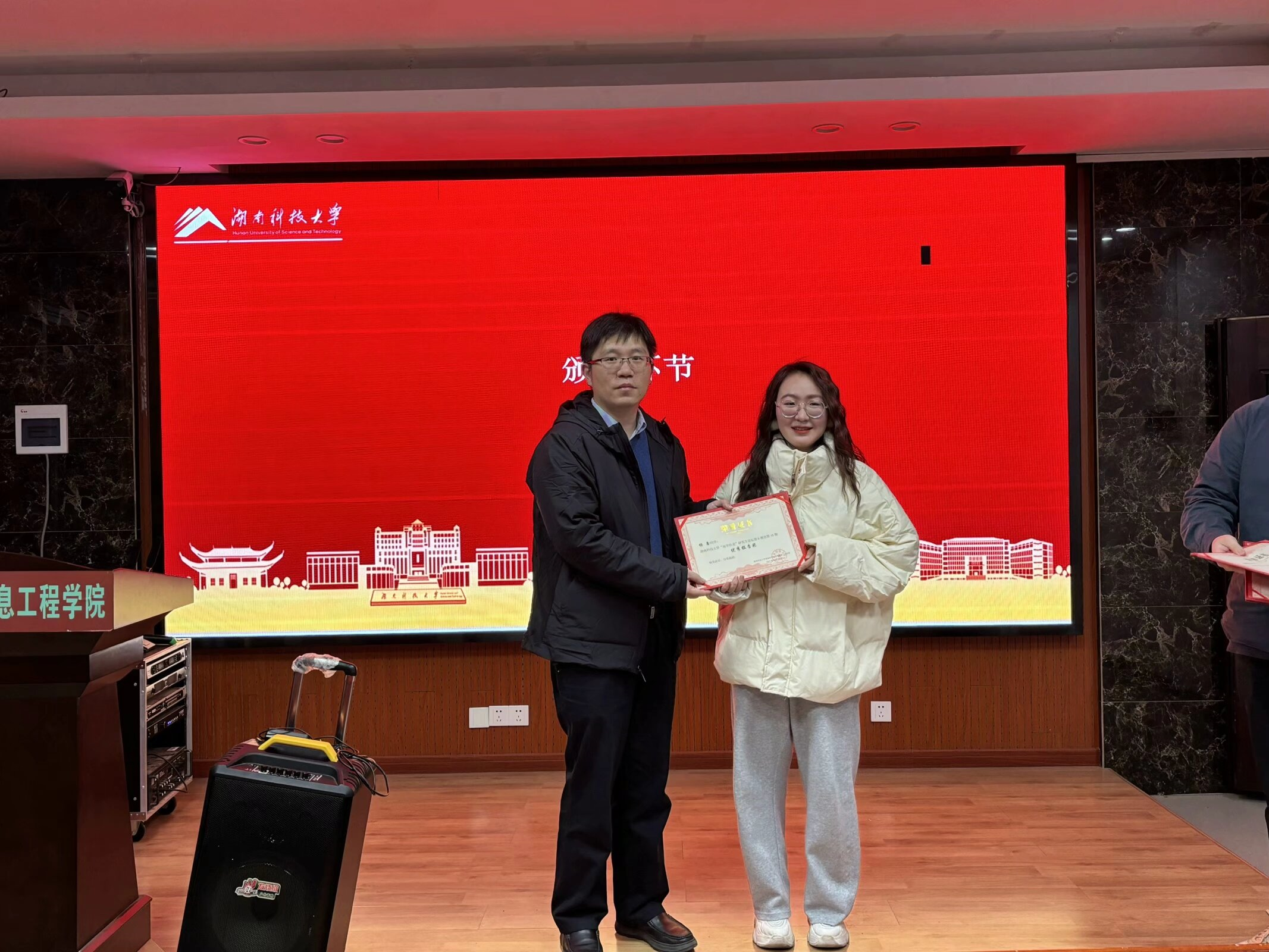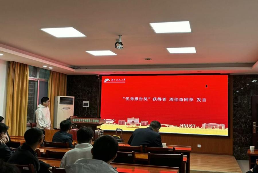 “地学沙龙”每2周举办1次,时间固定在星期五下午。第9期至第16期共有34位同学进行了学术汇报,经过评委打分,选出周佳奇等6位同学论文为湖南科技大学“地学沙龙”第9期至第16期优秀论文。校研究生院副院长陈宇强教授为各位获奖者颁发奖状,周佳奇同学代表获奖者发表获奖感言。
