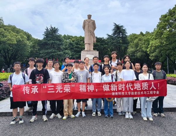 在岳麓山南门前毛泽东塑像前拉下帷幕,大家在毛泽东塑像前合影留念,此次《构造地质学》课程思政实习之旅完美收官。实习结束后,同学们纷纷表示实习内容丰富,在理论联系实际的同时,又融入了丰富的课程思政元素,让他们对地质行业有了更加深入的认识和了解,大大提高了专业认可度和自信心,增加了努力学好专业知识的动力和决心。