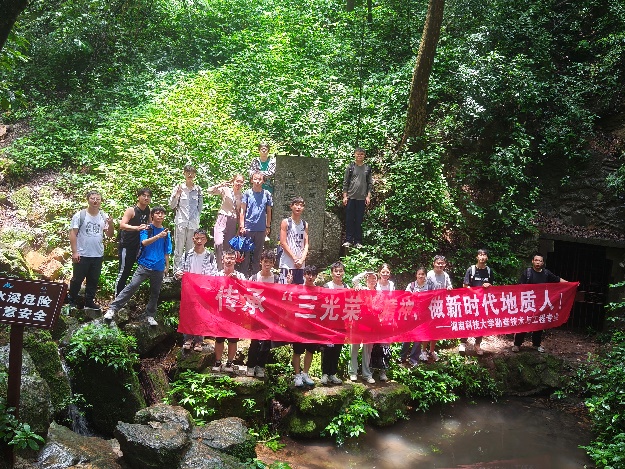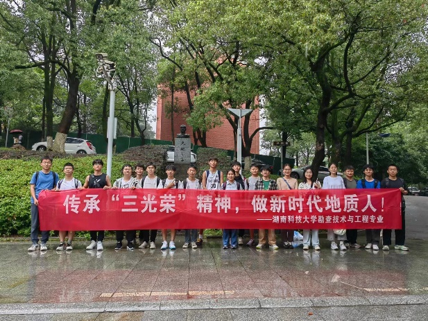 此次课程思政之旅的主题是“传承三光荣精神,做新时代地质人”,学习的内容包括两个方面,一是包括球状风化、共轭节理、斜层理、砂岩灰岩夹层、湖大断层、枫林沟背斜等地质现象观察,二是包括丁文江先生墓、长沙会战指挥部旧址和纪念碑、黄兴墓、蔡锷墓、爱晚亭参观等在内的课程思政内容。