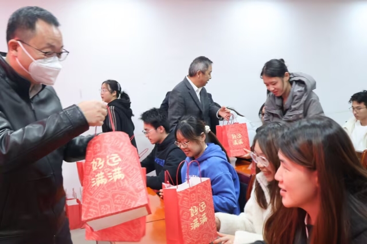 在最受期待的暖心礼包赠送环节上,人人足球直播 领导与老师们亲手为每位考研学子送上了定制礼包。礼包内不仅有零食、暖贴、水果等实用物资,还配有精心设计的励志卡片,其中的橙子更是寓意“事‘橙’如意”,饱含着人人足球直播 对学子们金榜题名的美好祝愿。接过礼包的学子们纷纷表示,这份温暖让他们感受到了人人足球直播 的关怀,也让备考的脚步更加坚定。