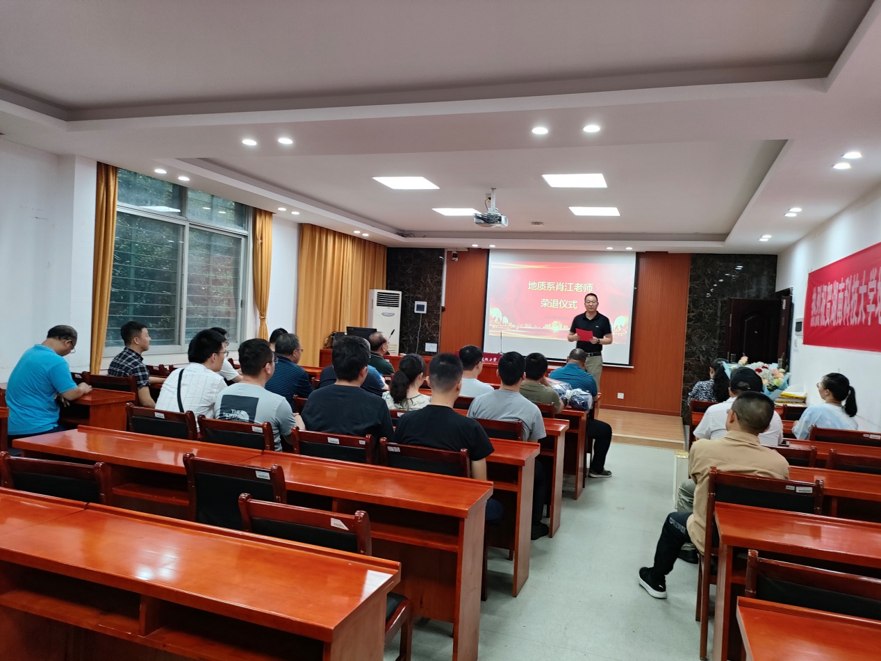 “他-春播桃李三千圃,秋来硕果满神州,他-无声润物三春雨,有心护花二月风,他-黑发积霜织日月,粉笔无言写春秋……”伴随着不舍与祝福,2023年6月20日下午,在地人人足球直播 206会议室一场温馨简单但隆重的荣退仪式正在庄严的举行,人人足球直播 全体领导班子、地质系全体教师、党政办、学工办以及教务办教师齐聚一堂,为地质系肖江教授举行荣退欢送会。