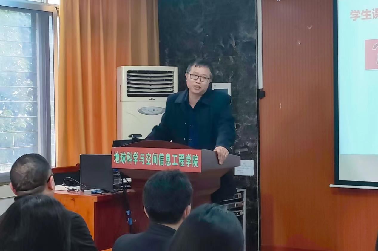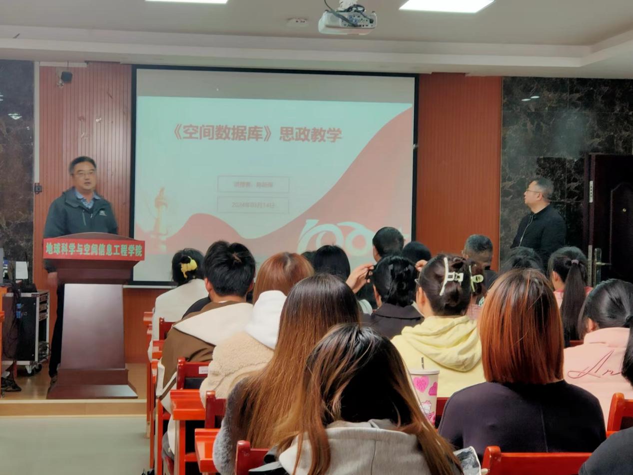 3月14日下午,本学期第二期课程思政教学示范课——《空间数据库》思政教学在地学楼206开讲。此次活动由教务处主办,人人足球直播 (人人足球直播 )承办。人人足球直播 院领导、各系部教师代表、22级地信专业本科学生到场观摩。活动由戴德求副院长主持,陈新保老师主讲。