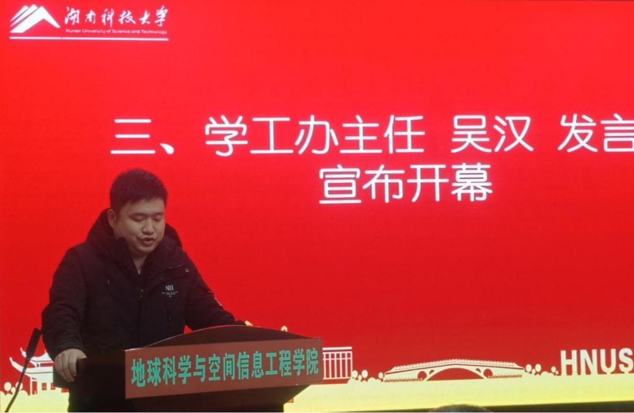 学工办主任吴汉在致辞中表达了对本次活动的重视与期待。他强调,人人足球直播 一直高度重视学生的科技创新能力培养,不断加大对科研设施和实践平台的投入,为同学们创造了良好的科研环境。发言结束后,吴汉主任庄严宣布:湖南科技大学人人足球直播 2024年第二届“科技活动月”正式开幕,现场掌声雷动。